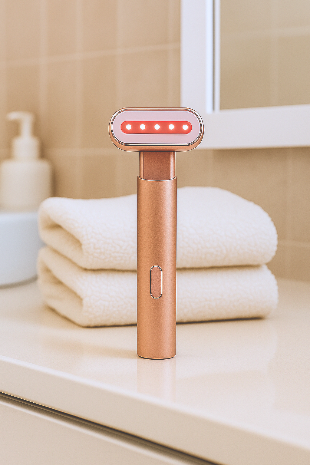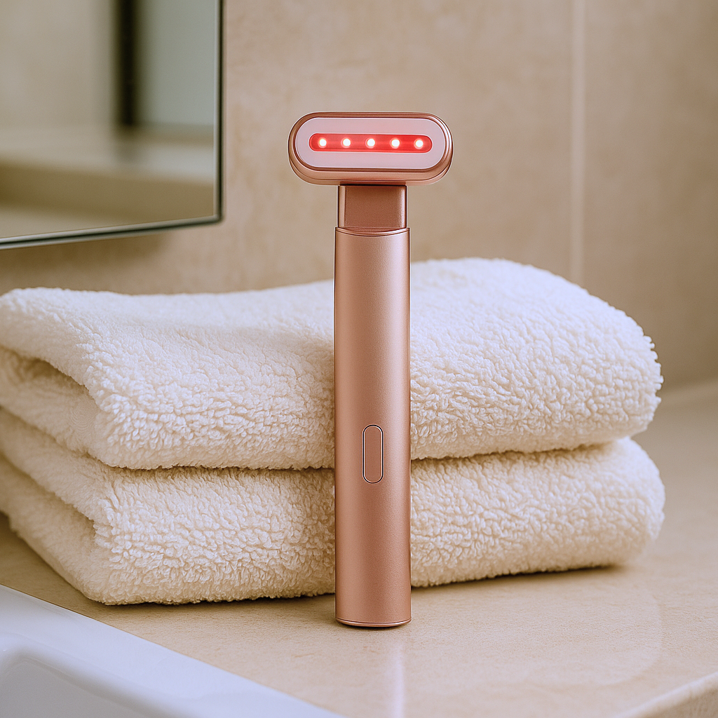 Notre baguette de luminothérapie 4-en-1 combine la chaleur douce, les microcourants et la lumière LED pour stimuler la production naturelle de collagène, raffermir la peau et améliorer l’éclat du teint.